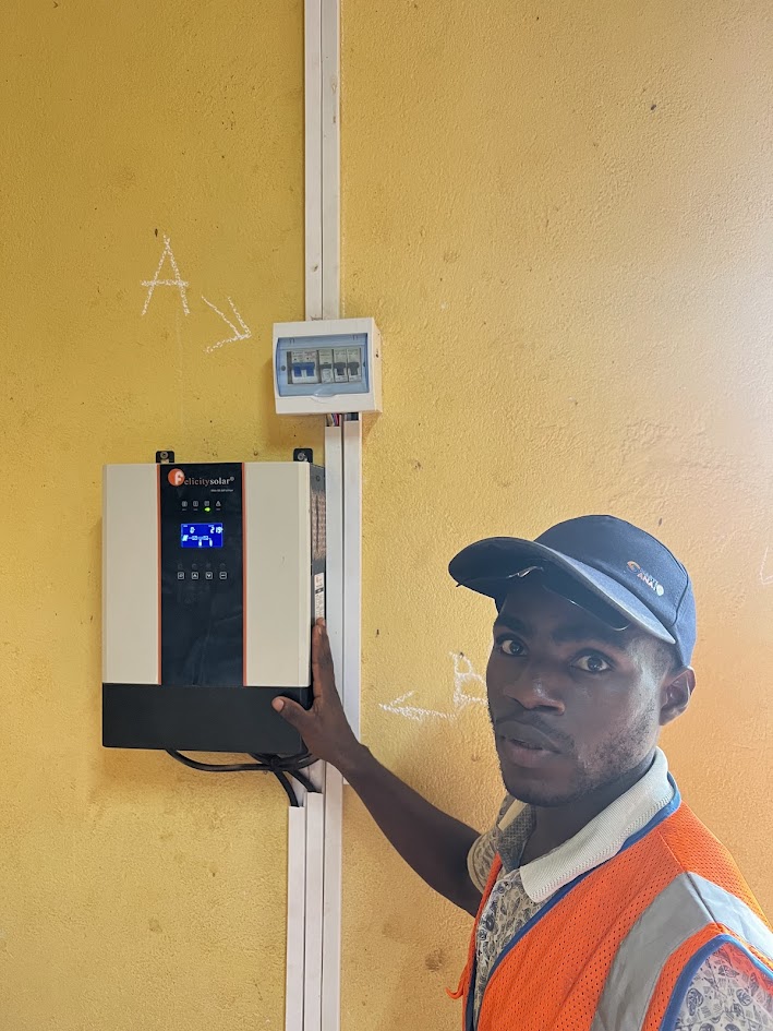 - Phase 1 (December 2023): Installation of a 3KVA Solar Power System with a 400Ah battery bank to power the computer lab and the school’s secretariat. The solar system was designed to provide reliable energy, ensuring the smooth functioning of the school’s computer facilities.